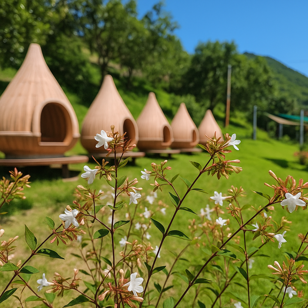 | 🍃 숲속 쉼터 | 우드데크, 그늘 평상, 감성조형물 | 사진 명소, 소풍 장소로 추천 |